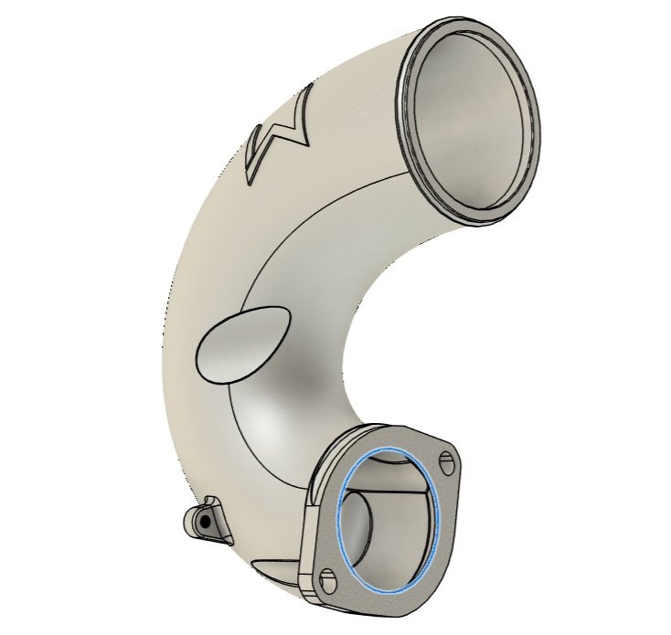 We are sticking with a cast aluminum design for the area near the turbo inlet. This allows us to clear the harmonic balancer pulley, wastegate actuator, and the VTC oil control solenoid in the area while maintaining maximum diameter. This is the best approach.