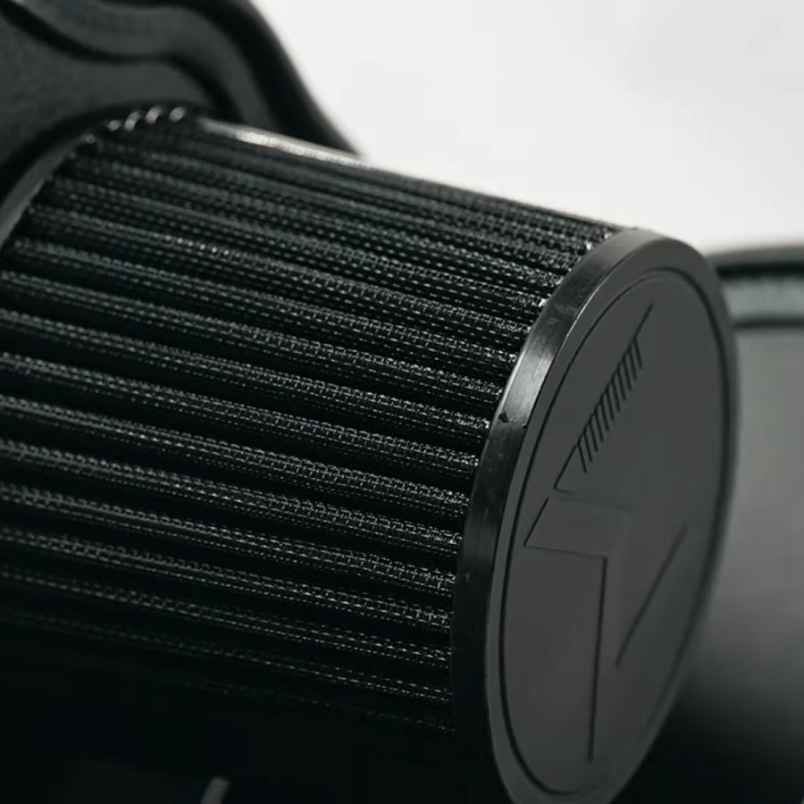 An enclosed intake keeps the turbo noises at bay. You only have a small opening for any sounds to escape from. Let’s be real, we want an intake because they sound awesome and this intake delivers in that department bigtime. The large filter and design allows all the noises to escape and reverberate off the metal shroud, which is exactly what we want. Speaking of filters, we’ll use a nice large dry-filter unit here. No need for oiling and you won’t find a small pancake filter that other systems use. It’s not worth it.